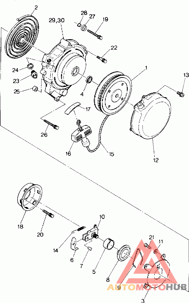 Деталь Starter, Recoil, Compl. * (incl. 1-18)