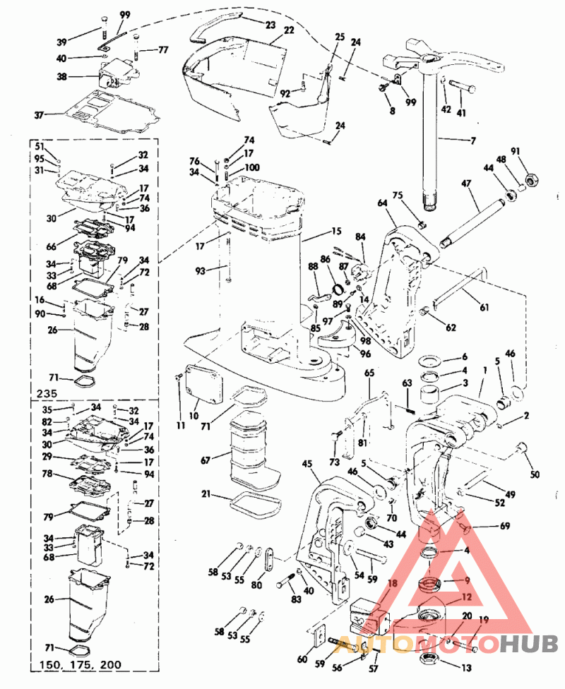 Деталь Hsg&stud Ay, Exh. ( 25 Inch Transom Models)