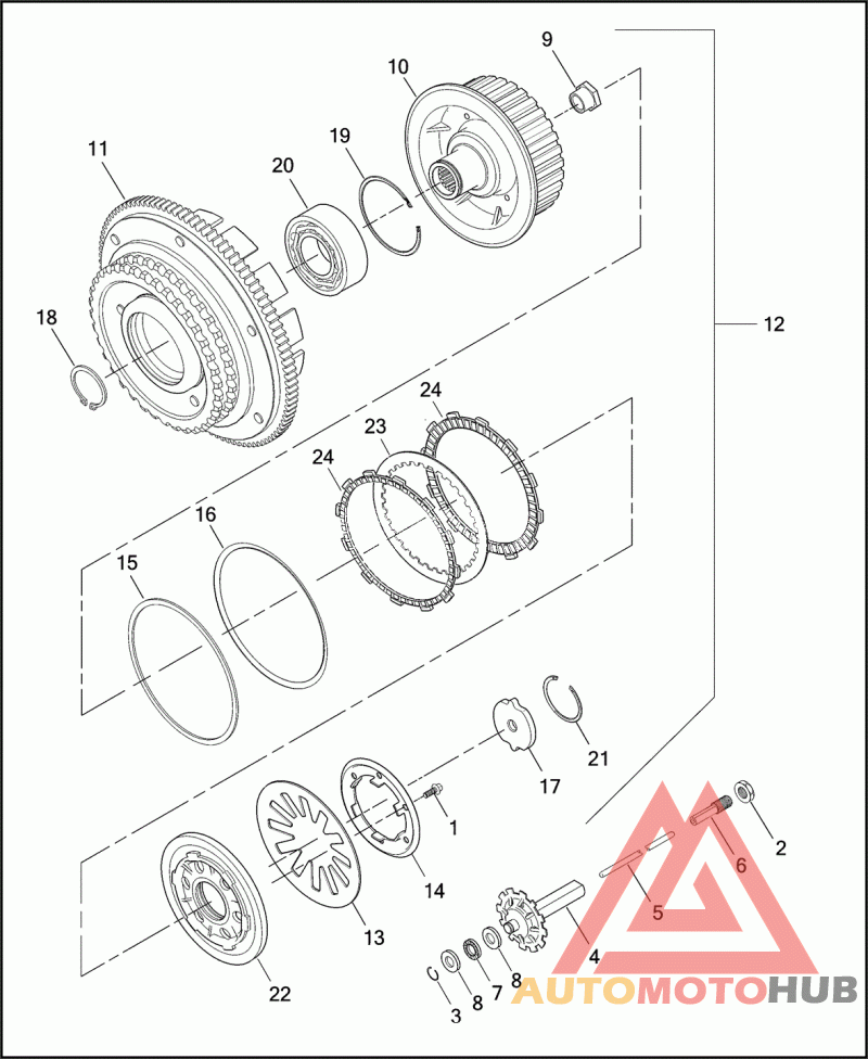 Деталь CLUTCH ASSEMBLY W/ 1, 9, 10, 11, 13, 14, 15, 16, 17, 18, 21, 22, 23 & 24