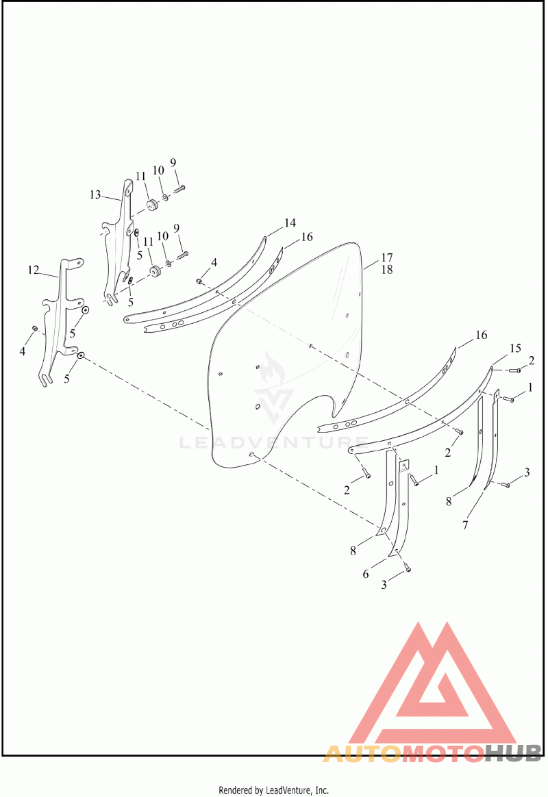 Деталь WINDSHIELD,ASSY,2-TONE,HDI | complete, with 1 - 8, 12, 13, 14, 15, 16 (black) (ASEAN, Brazil, China, England, EN2, HDI, HD4, Japan, JP2)