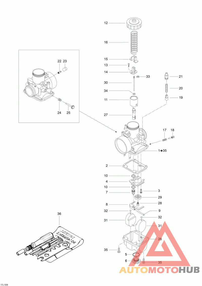 Деталь Carburetor Vm30-219, Pto. Pto Side, Includes 1 To 35